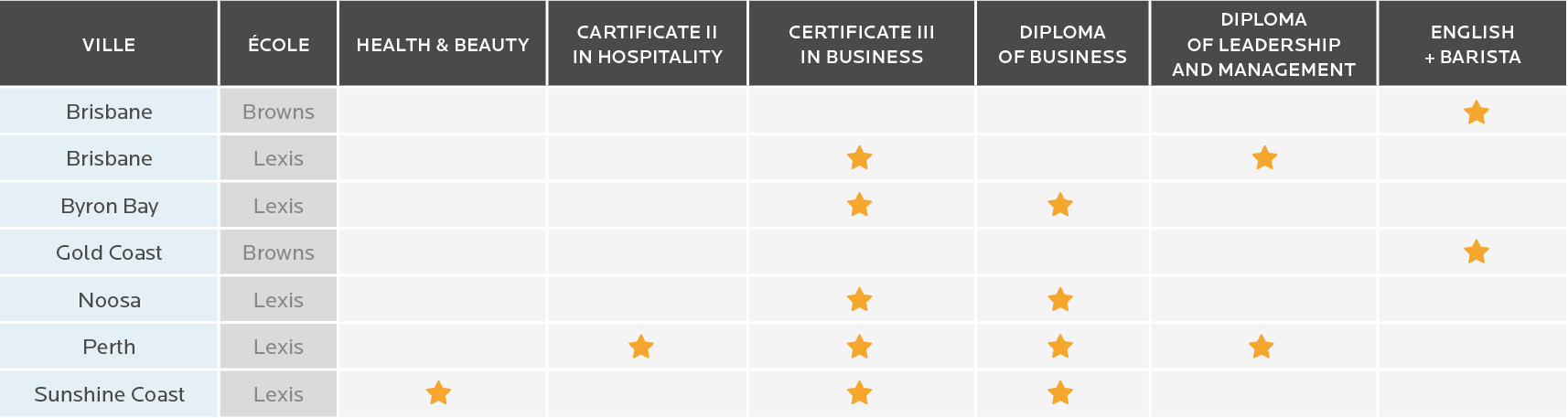 Content: This program combines specific English courses related to the restaurant industry and practical training in the field (coffee preparation, service, regulations, hygiene). It prepares students to work in the restaurant industry in Australia afterwards (only with a working holiday visa).